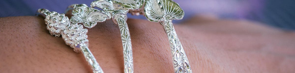 Handmade Sterling Silver West Indian Bangle: Cocoa Pod Ends